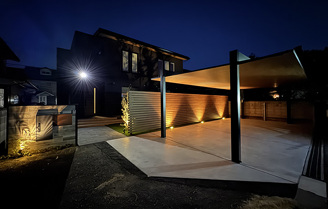 庭と家のつながりを大事にし、昼夜を問わず楽しめるよう視線カットをしつつ開放感のあるデザインに仕上げました。